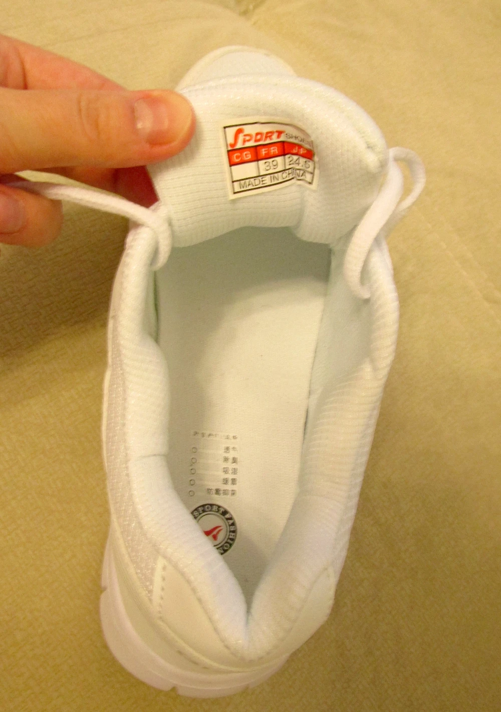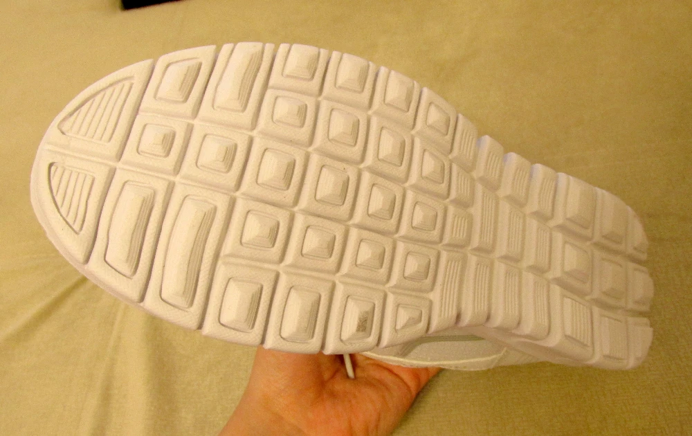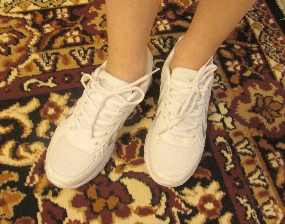 Удивил вес кроссовок: они почти невесомые. Ходить удобно. Удобно ли бегать не скажу, т.к. брала для других целей. Качество всех материалов, из которых выполнены кроссовки, нормальное: не супер-пупер, но за такие деньги выше ожидаемого. Единственный минус — запах. Продавец положил в посылку пакетик с какими-то пахучими травками, и в сочетании с запахом самих кроссовок это было непередаваемое амбре… Трое суток на балконе чуть исправили ситуацию, но все равно запах этих пахучих травок меня преследует ))