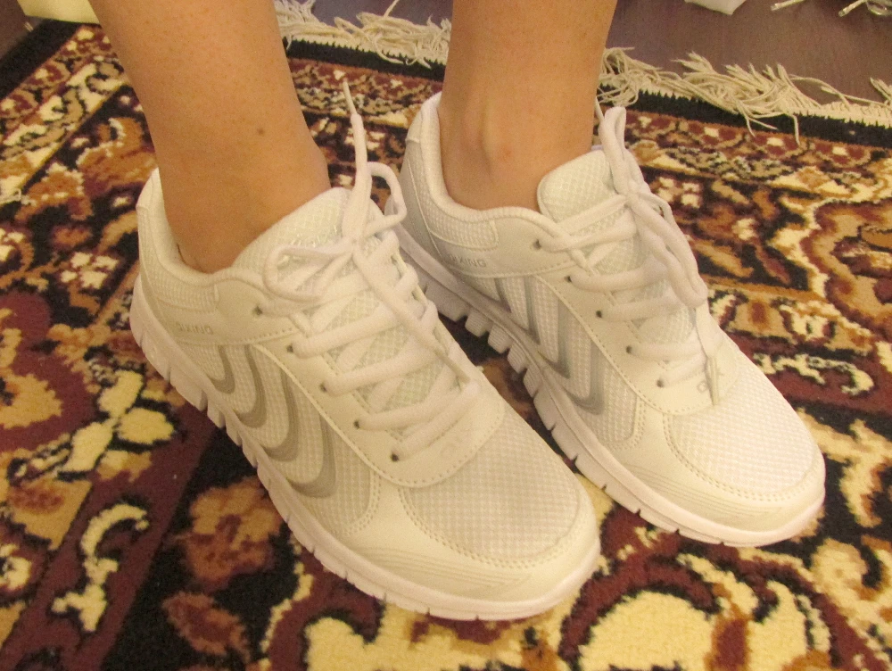 Бюджетные кроссовки для прогулок с ребенком. Да, я знаю, для этого дела цвет самый непрактичный )) Но я люблю белую обувь и не смогла устоять. Надеюсь, мне удастся сохранить их чистоту достаточно долгое время. Сама не пробовала, но пишут, что после стирки кроссовки живы.