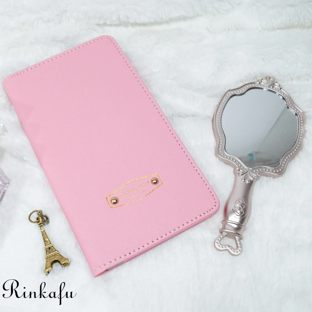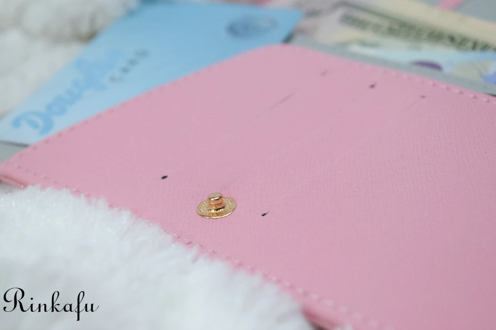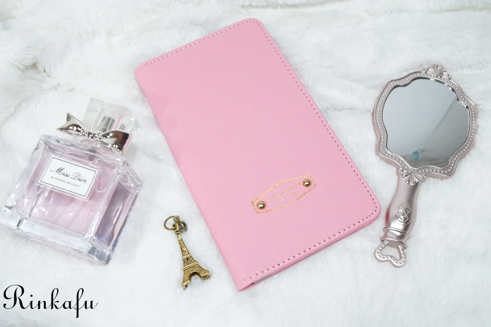 В держатель можно сложить все бумажки типа билетов, визы , страховки… Очень удобно, так как всё у вас под рукой. Не нужно рыскать по сумке в поисках. Как видите, я выбрала для себя в прекрасном нежно-розовом цвете. На держателе есть надпись золотистого цвета.
