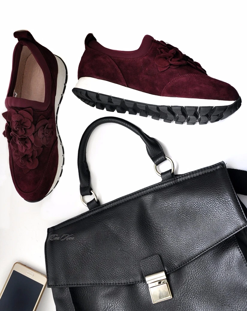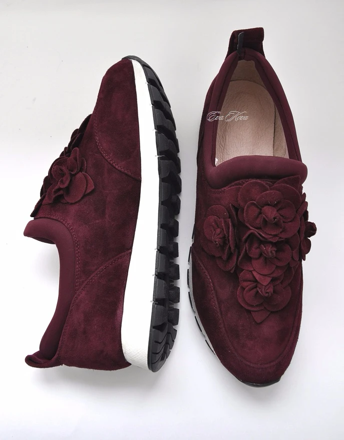 ЗАМШЕВЫЕ КРОССОВКИ с розами в очень красивом винном цвете